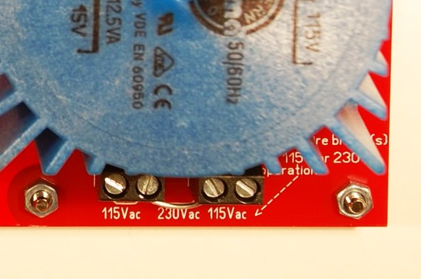 Last but not least the kit can be used for 230Vac mains as well 115Vac mains. Just make sure to put the right jump wires in place...